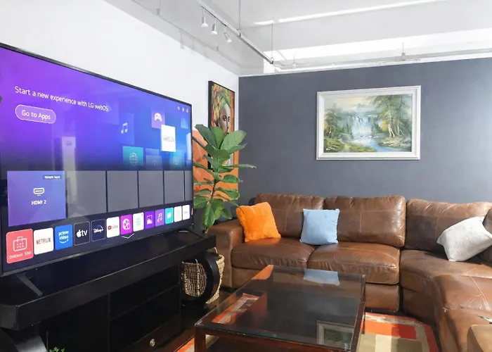 Das Apartment Modern Maboneng Stay With Kingbed, Wi-Fi And Netflix verfügt über Annehmlichkeiten für Selbstversorger wie komplette Küche und bietet außerdem einen Essbereich und einen Essbereich im Freien, in der die Gäste entspannt ihre Mahlzeiten einnehmen können. Der nächstgelegene Flughafen Rand ist 15 km vom Apartment entfernt, und die Bushaltestelle Ellis Park East ist ca. 800 Meter von der Unterkunft entfernt. Aktive Gäste dieser Apartments können einen Golfclub genießen.